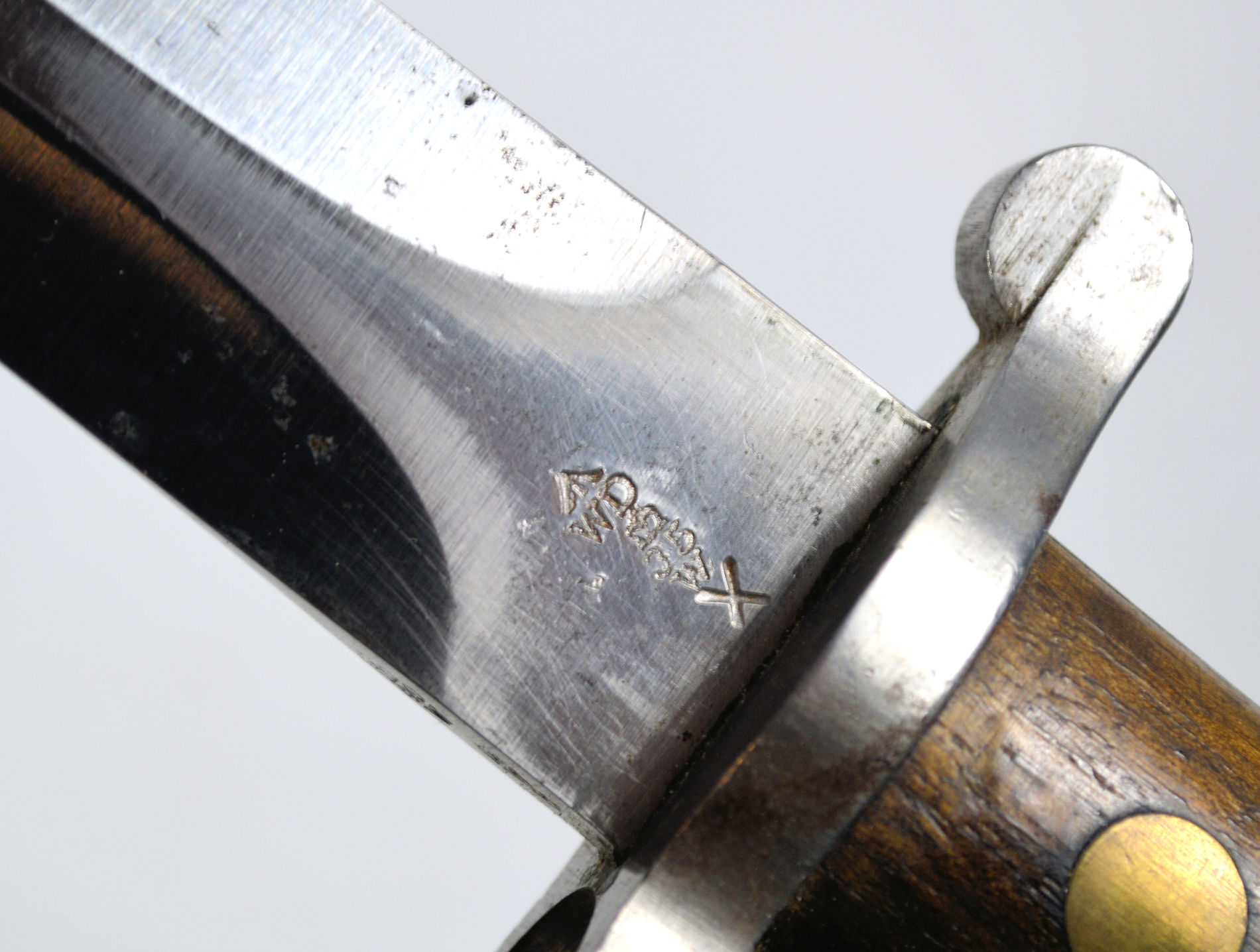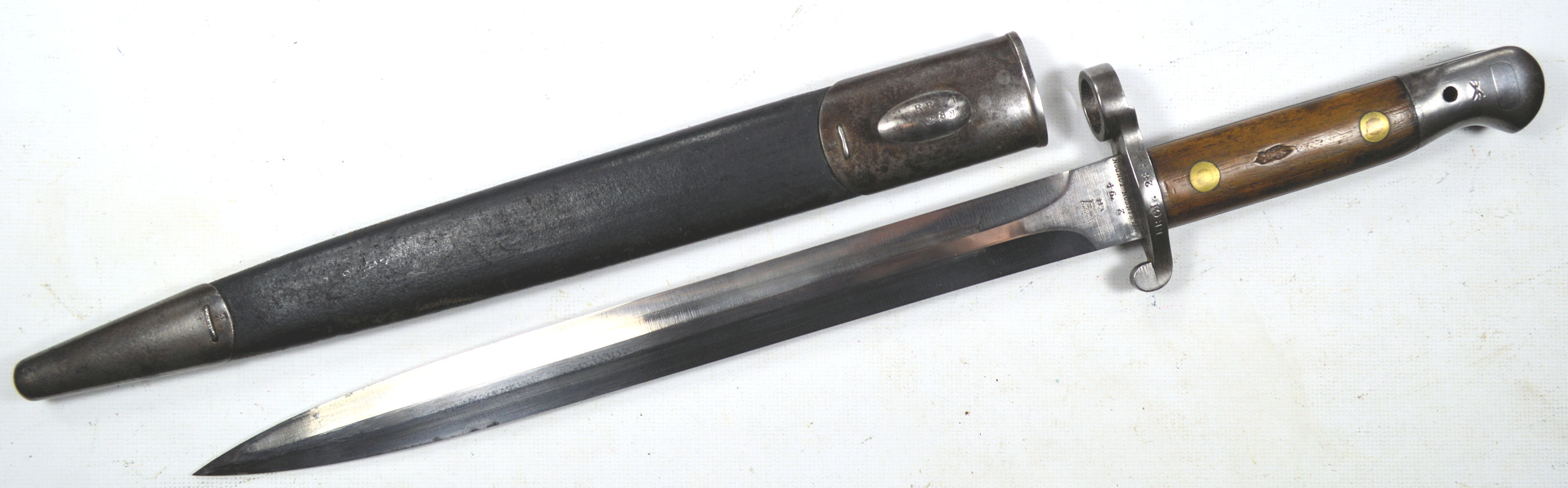 and was rejected. Note the X mark. Complete with a Mk. I scabbard.