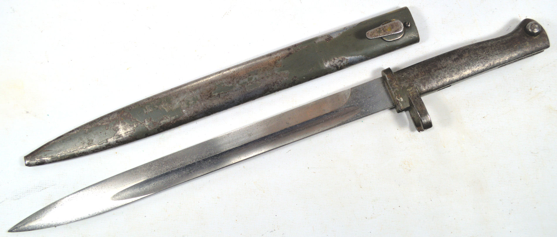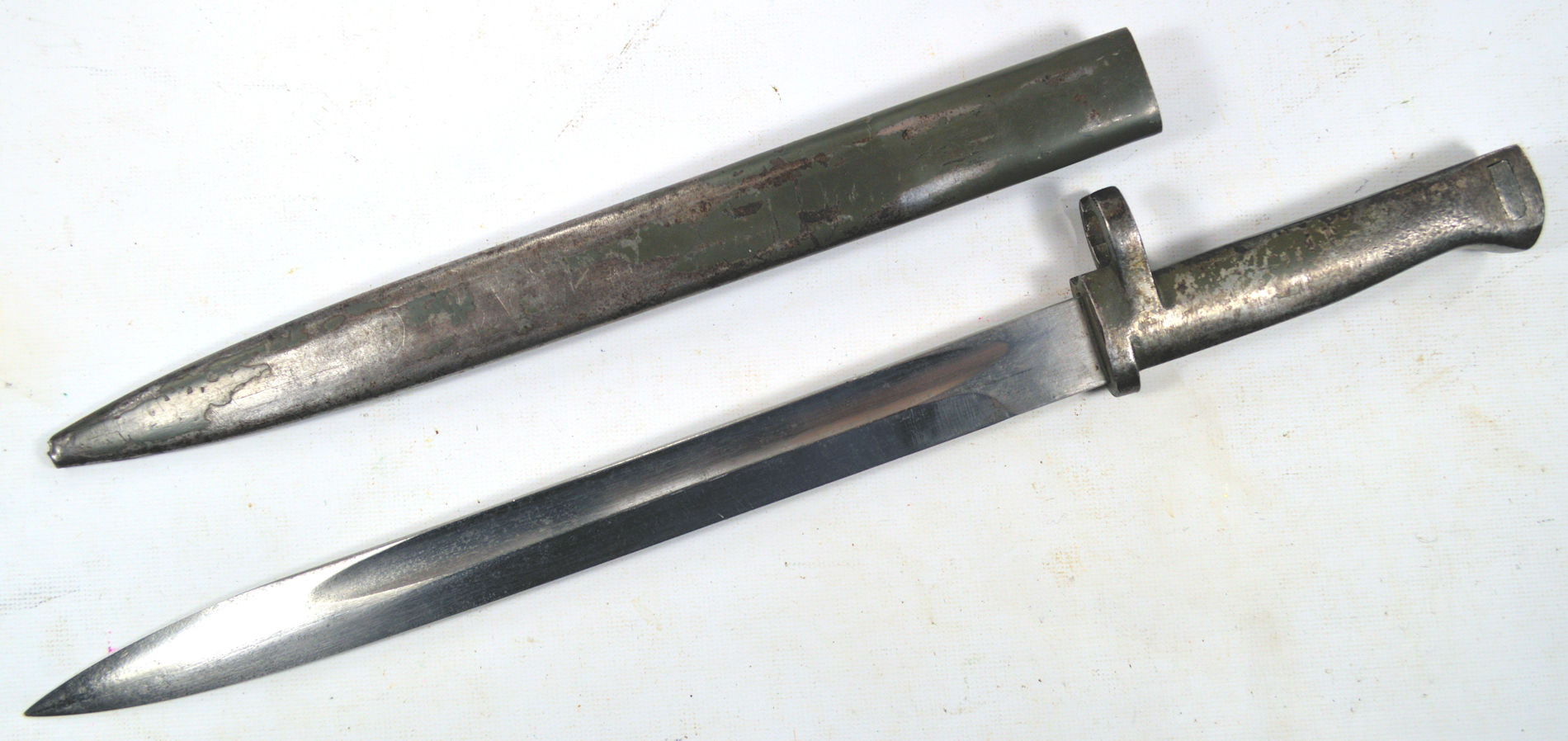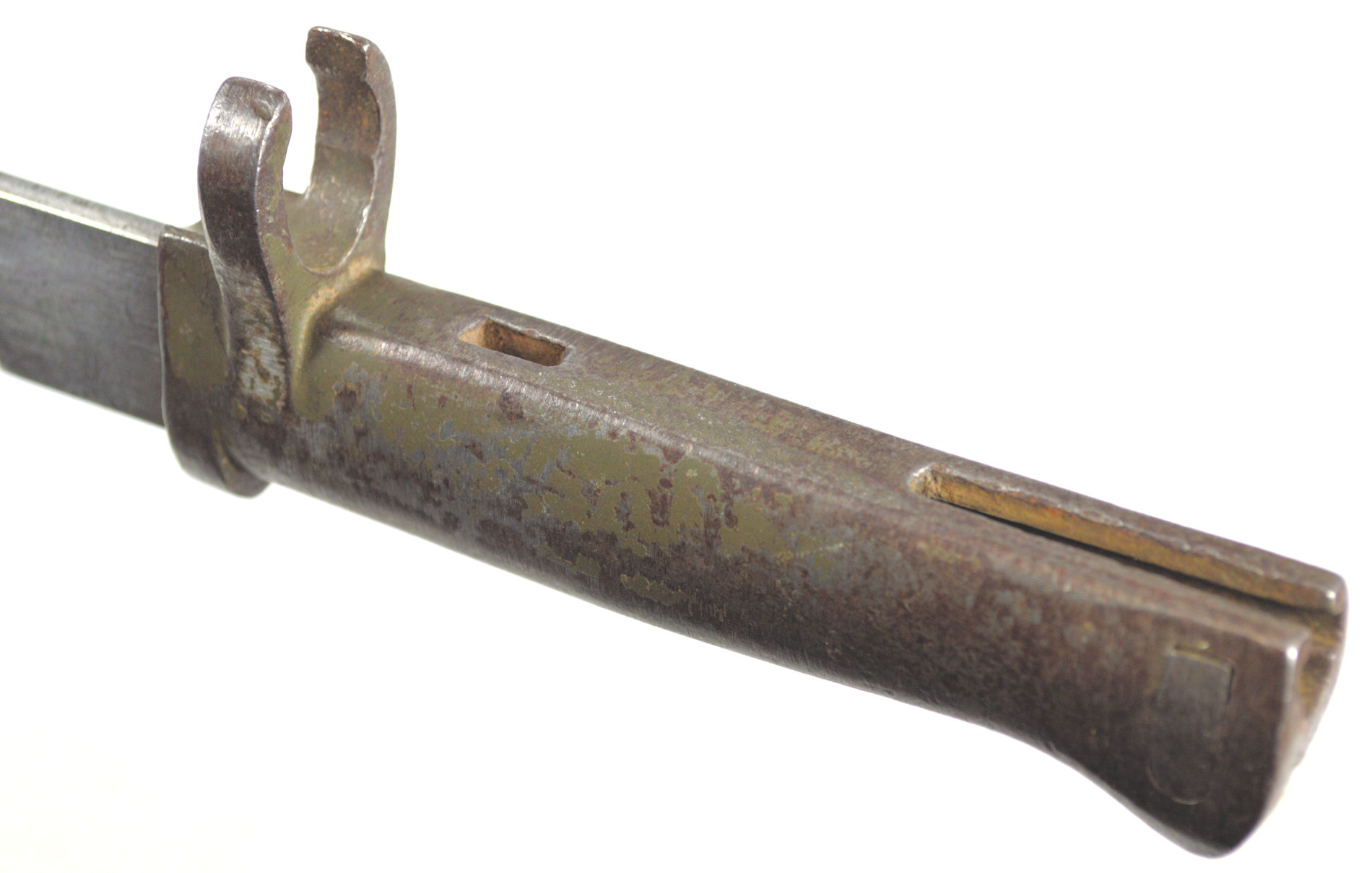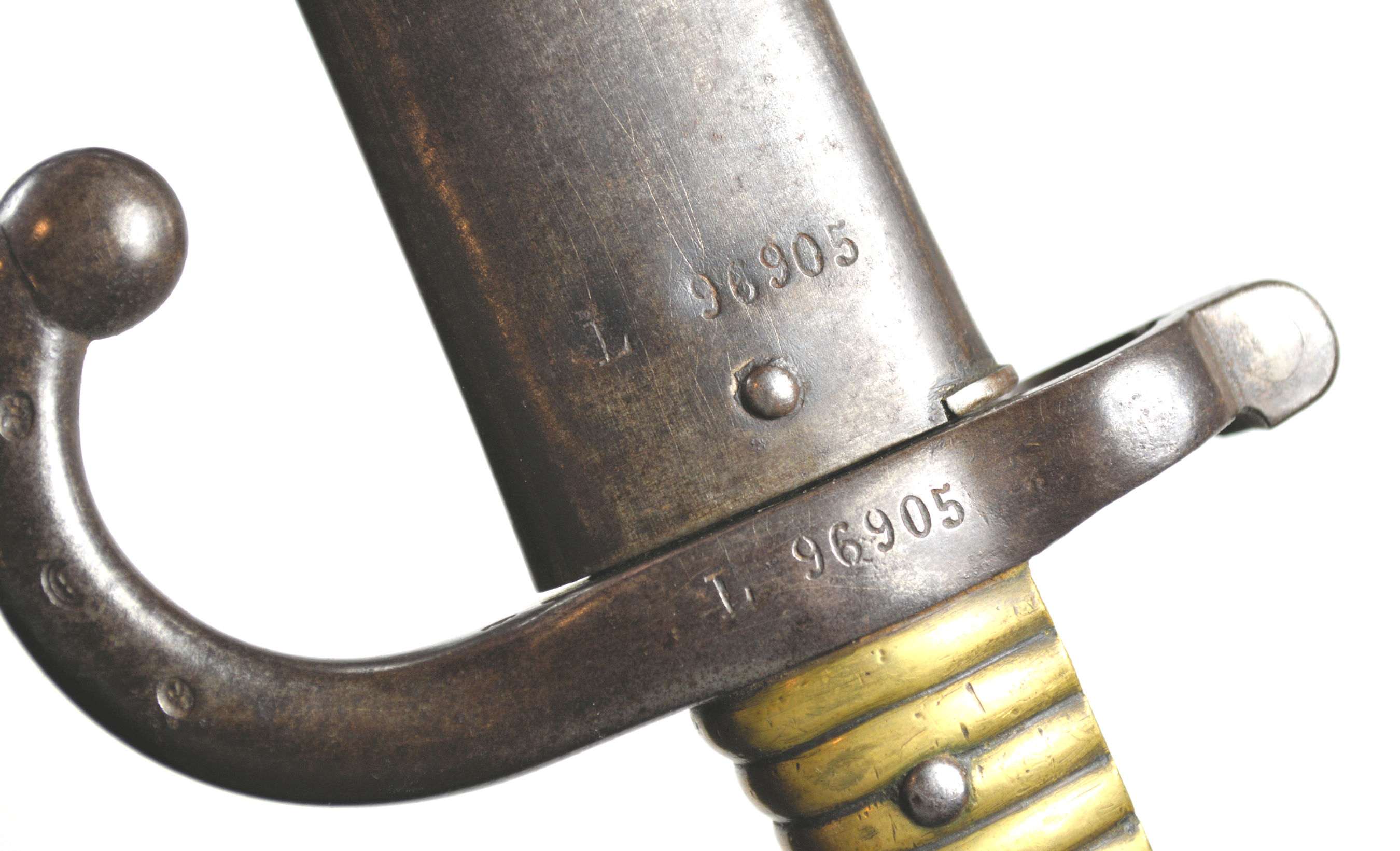 - A French M1866 sword bayonet with serial number matching scabbard. Modified to fit Gew88. Not a Cahen-Lyon supplied bayonet, but one