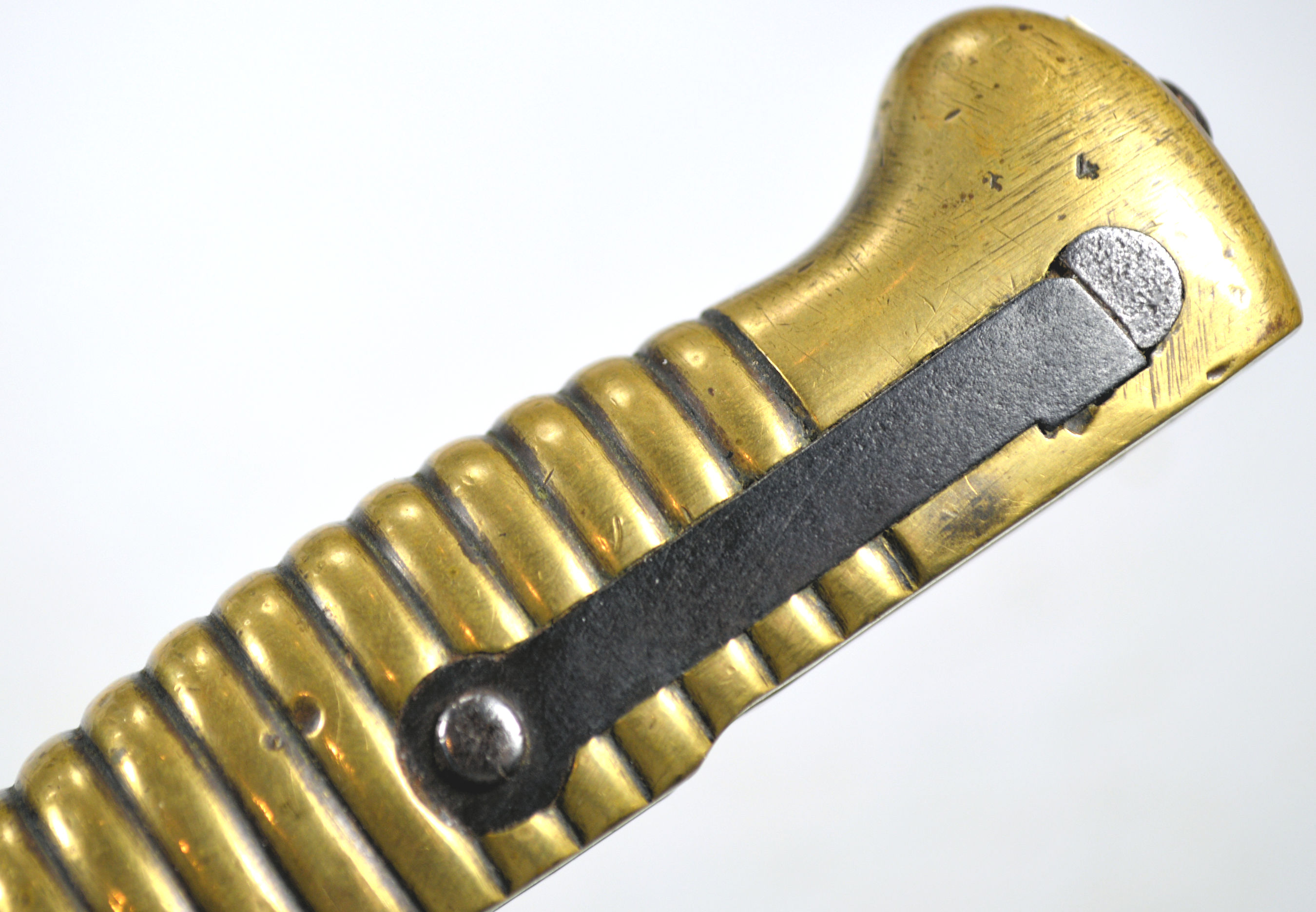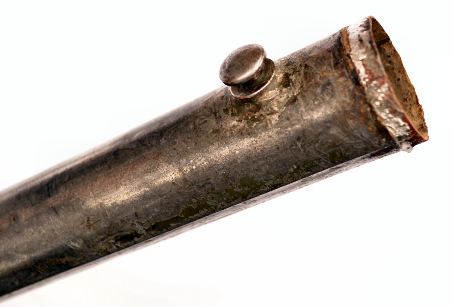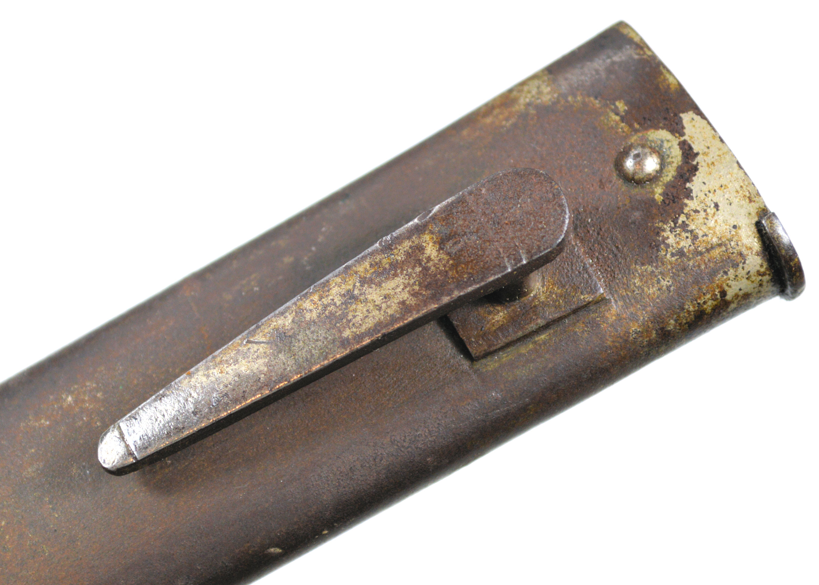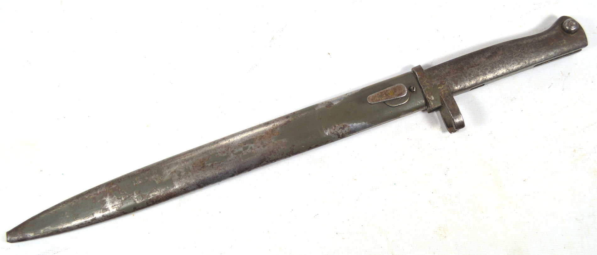 - An ersatz knife bayonet with a cast steel hilt and a rounded pommel with no re-inforcement around the locking catch.