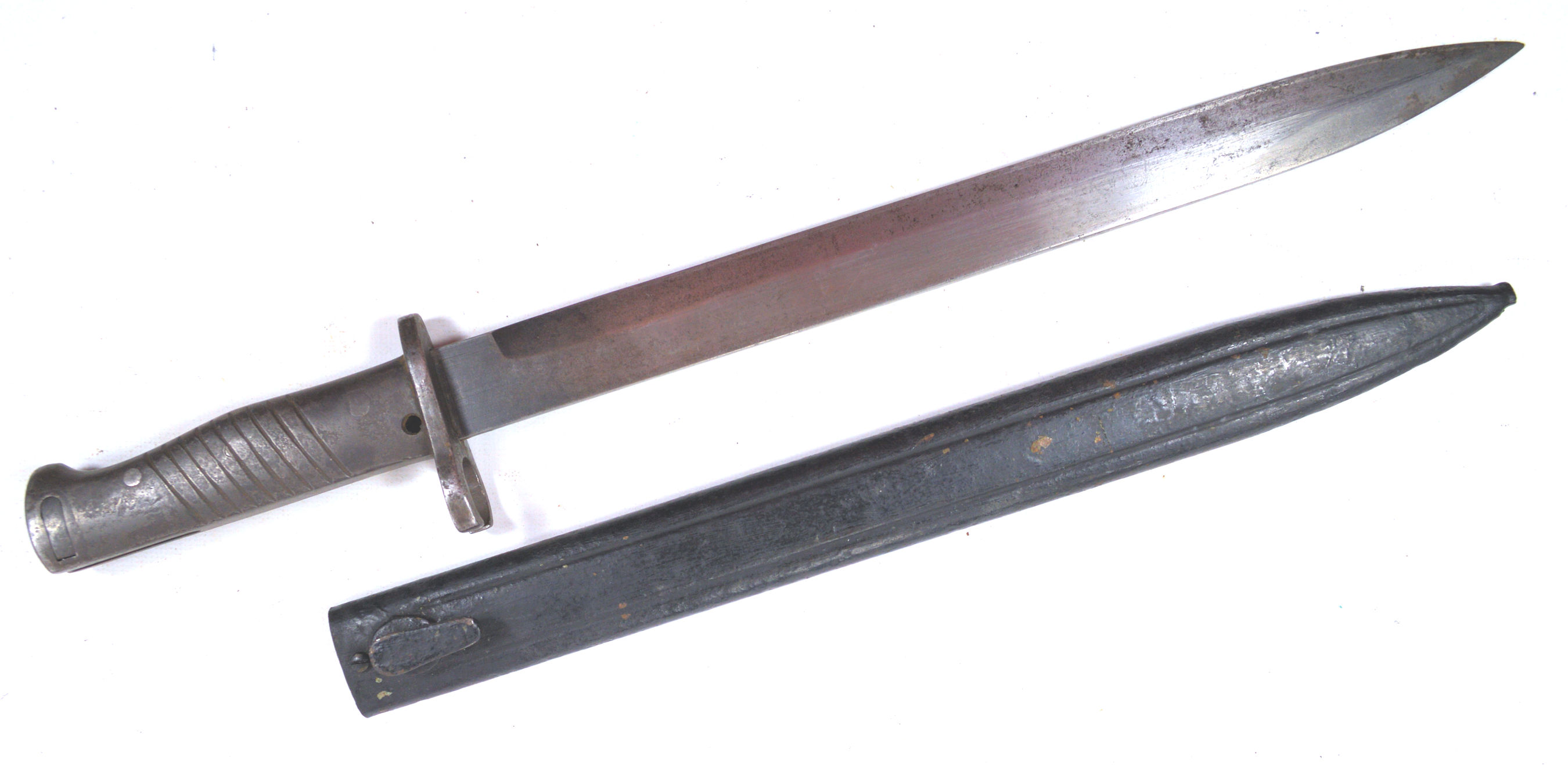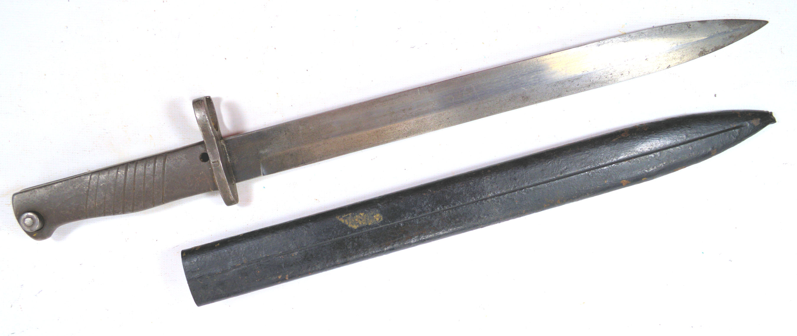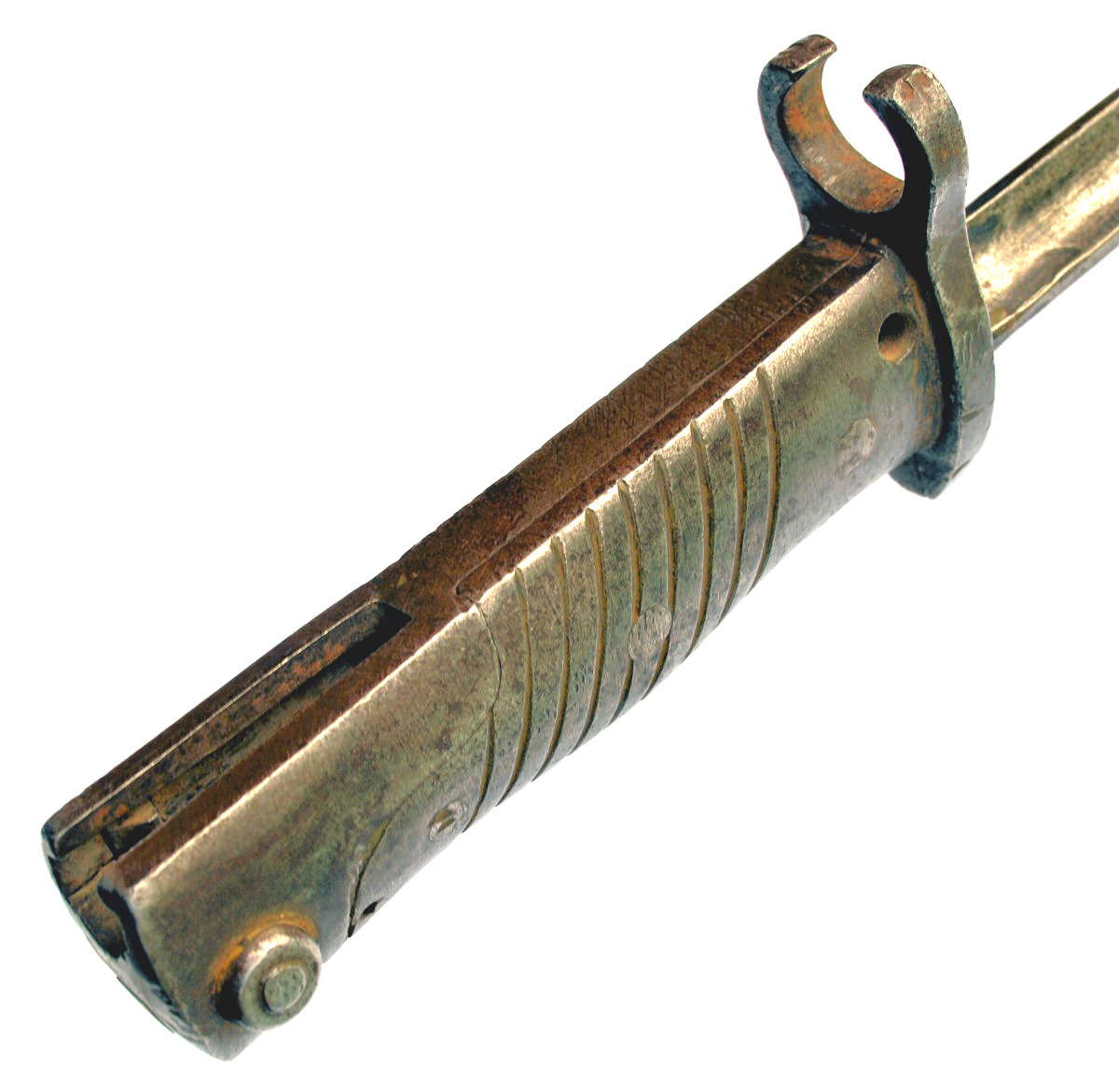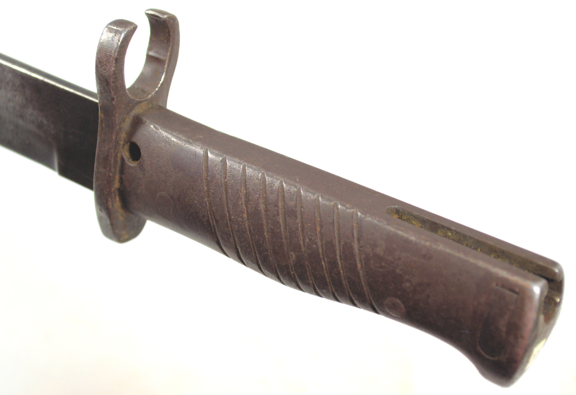 - An example of one of the more elegant ersatz knife bayonets. A cast steel hilt with two piece wood grip inserts each with nine diagonal grooves , securred by a screw bolt.