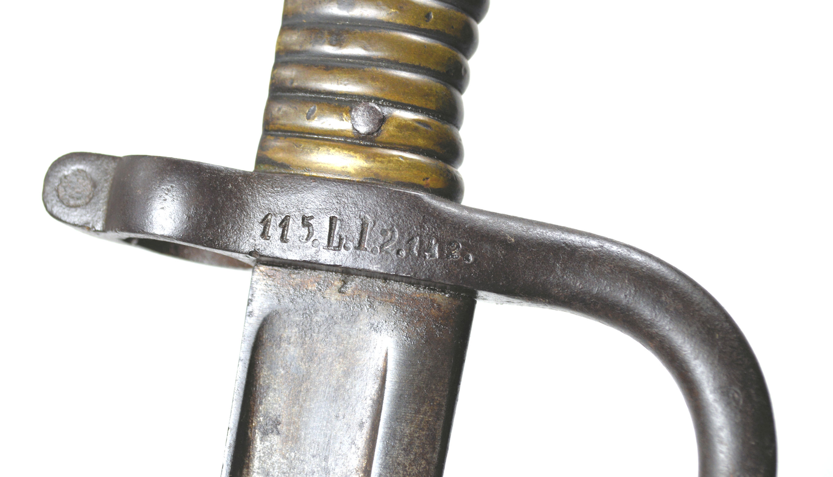 - A captured French M1866 Chassepot bayonet seconded into German service. The crossguerd stamped 115.L.I.2.142. (Landwehr-Bataillon Darmstadt), complete with