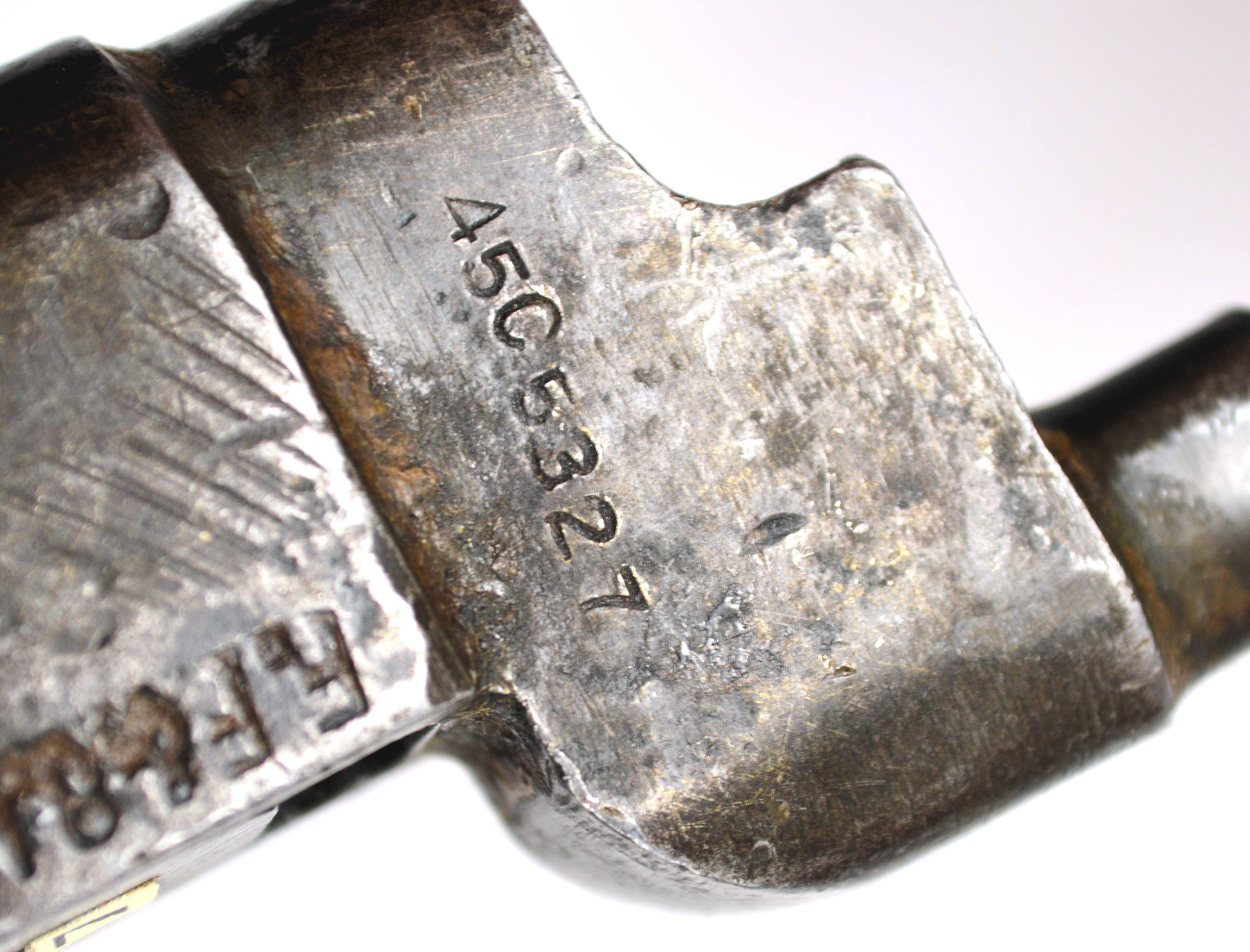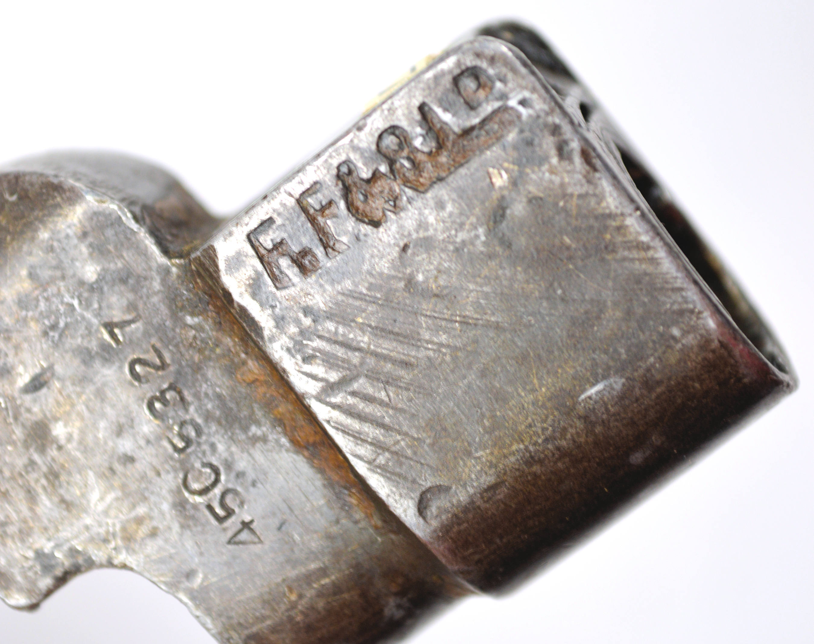 The right face socket marked F.F & S Ld for F. Fisher & Son, and stamped 45C5327. The "C" serial number on socket indicates the bayonet was