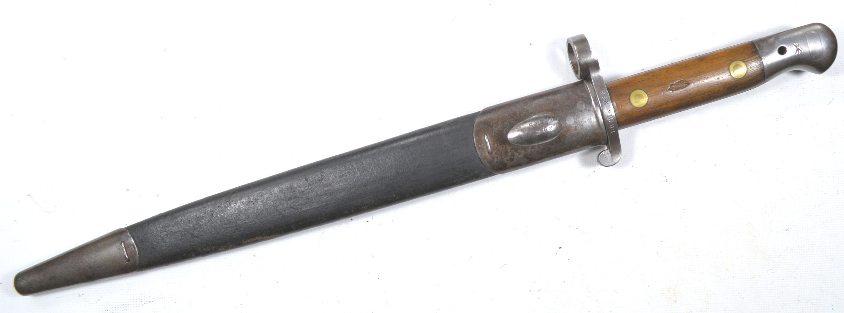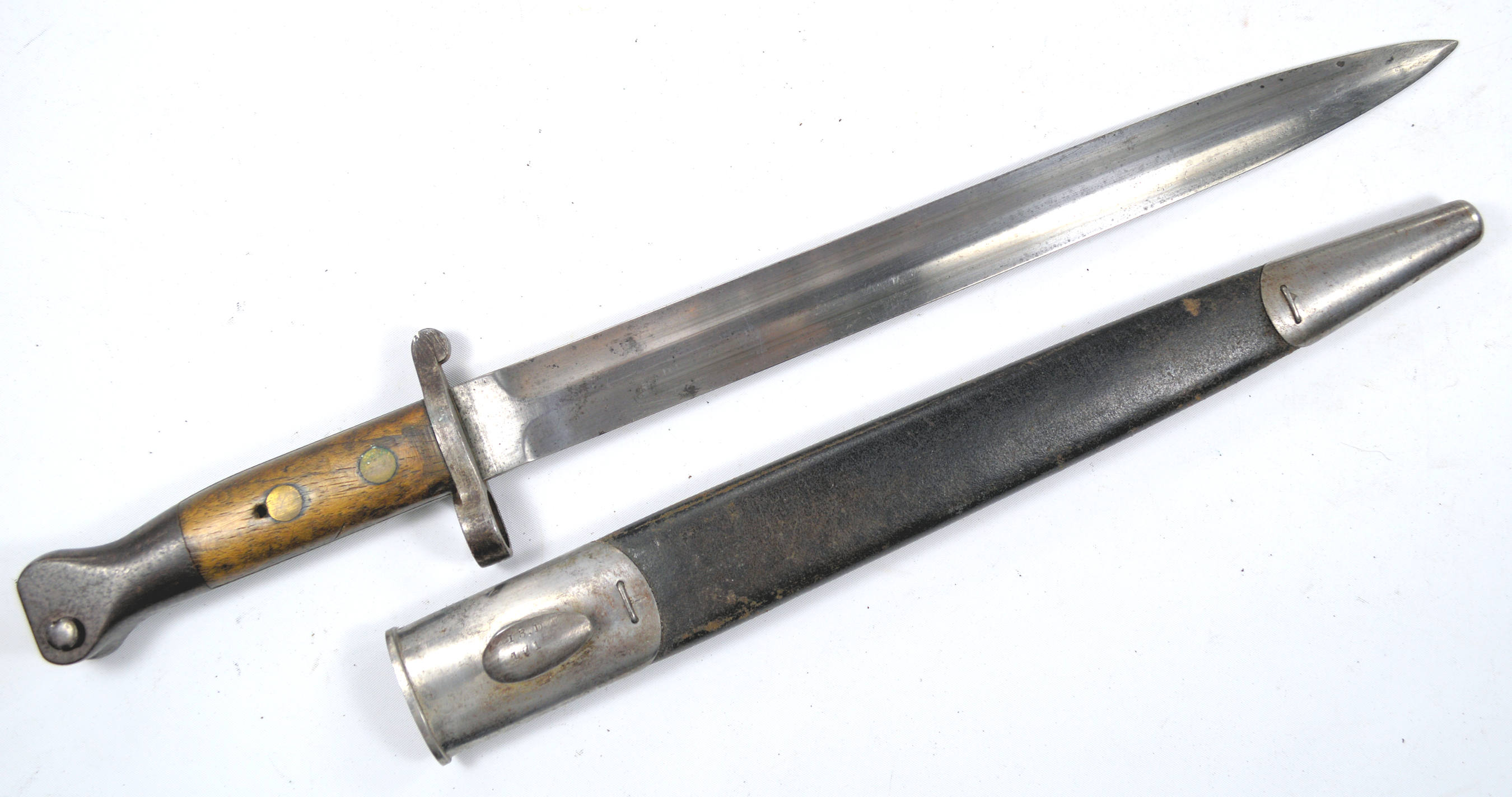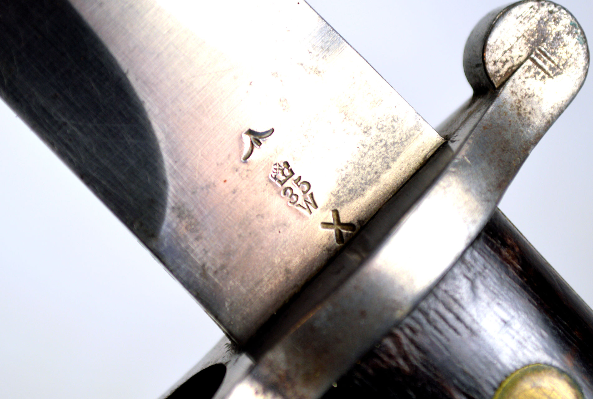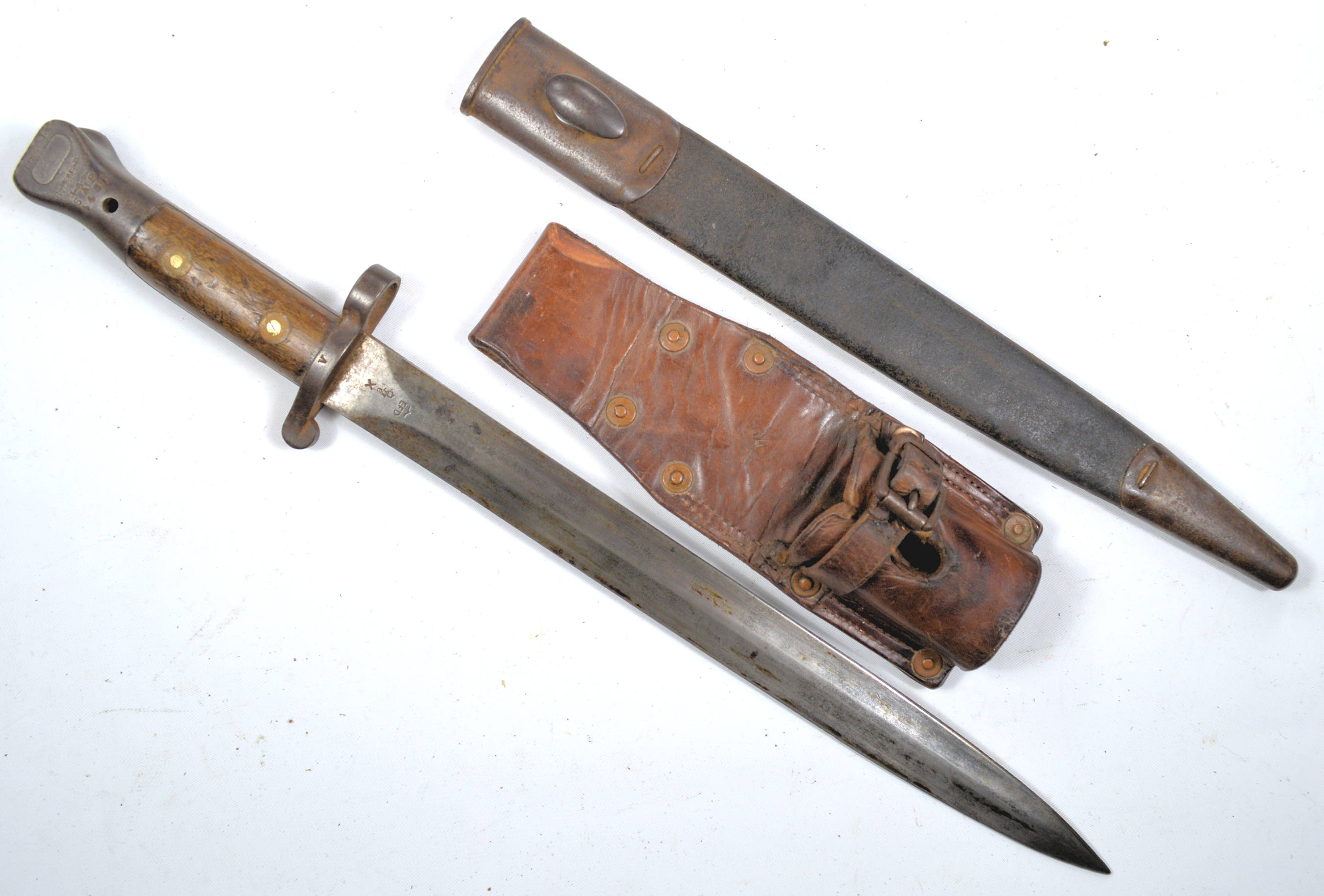 and was rejected. Note the X mark. Complete with a Mk. I scabbard.