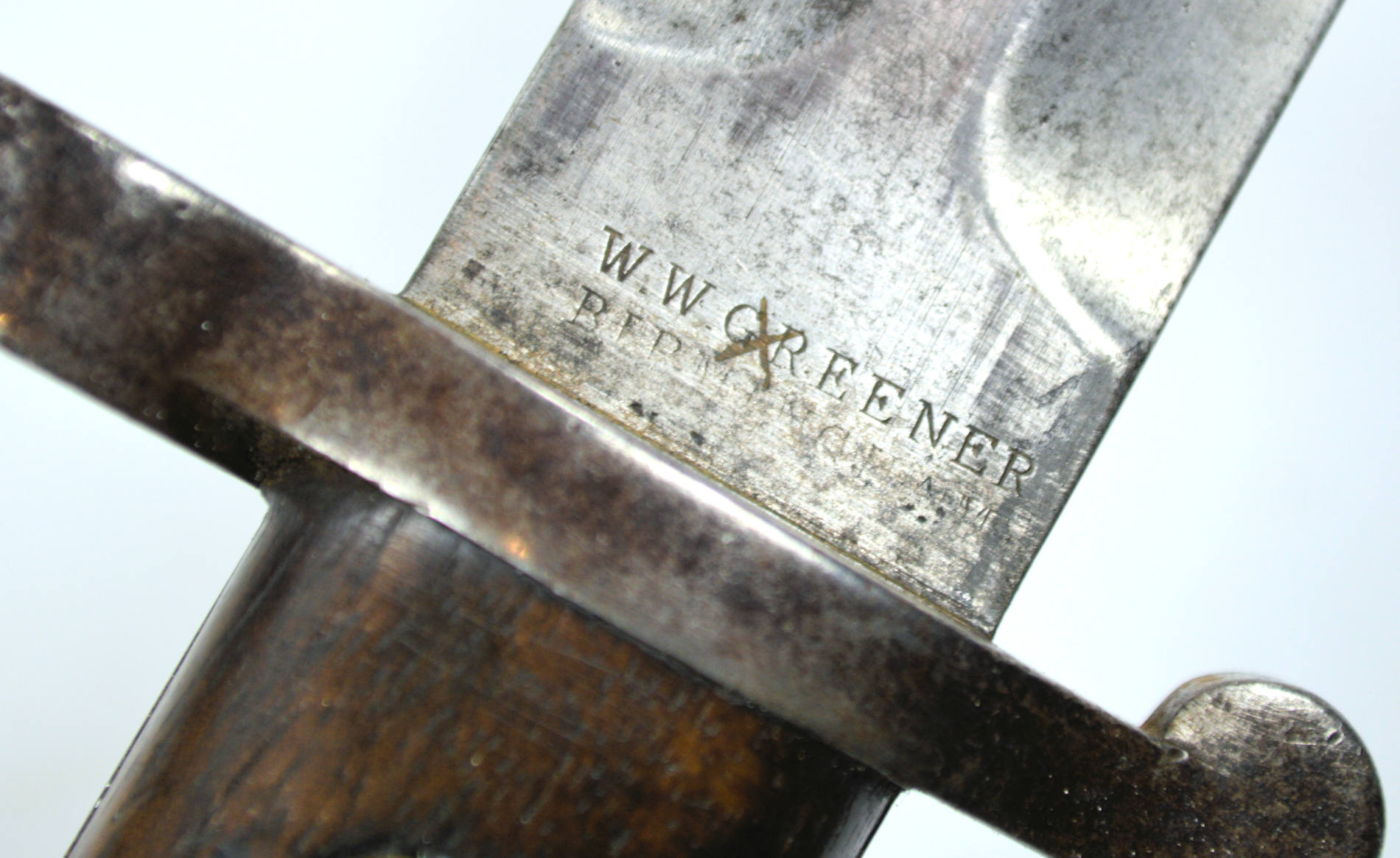 - A commercial P1888 Mk.I (second type) bayonet, retailed by gun-maker W. W. Greener of Birmingham. Similar to Rigby, Greener exploited the opportunity of supplying arms to the Volunteer movement,