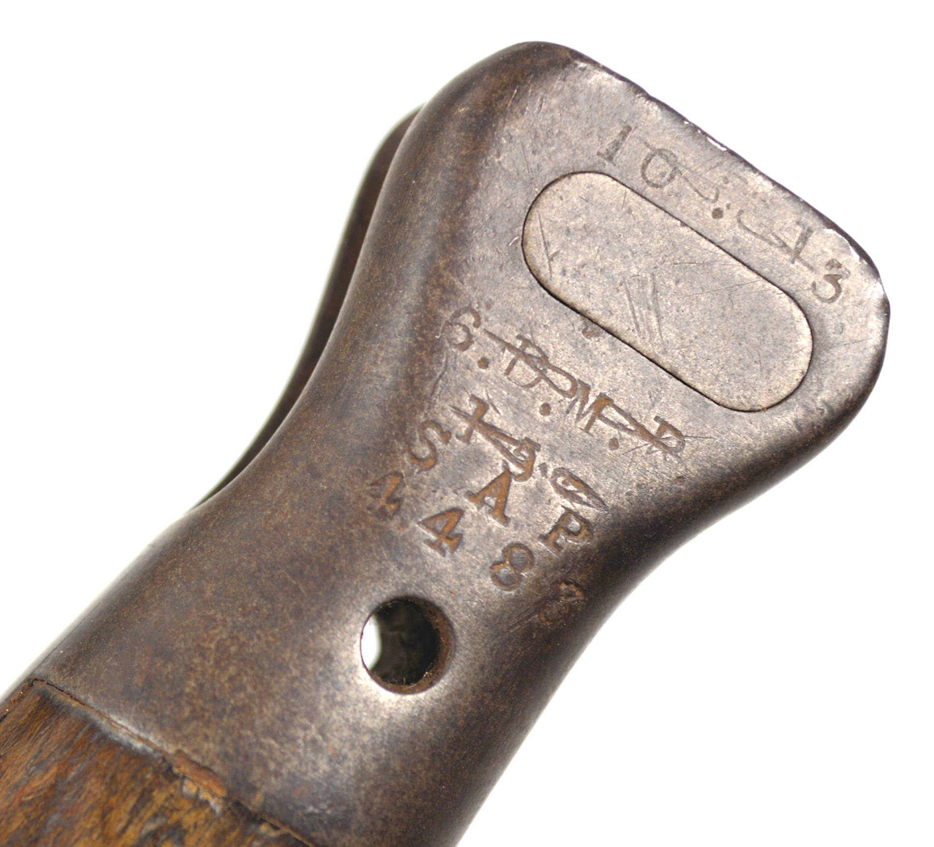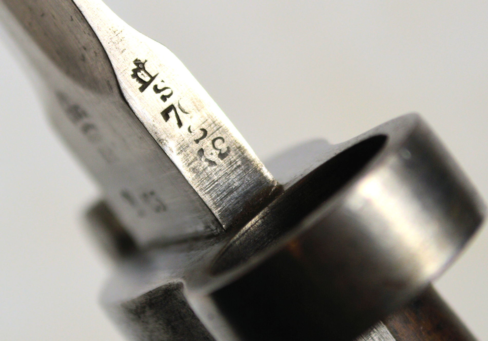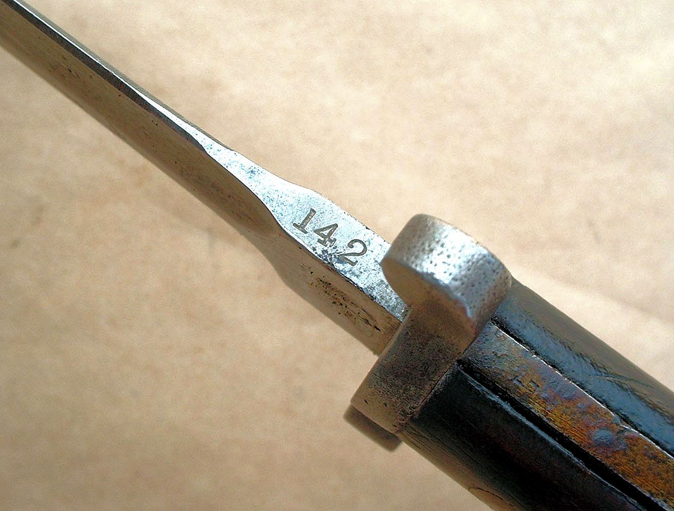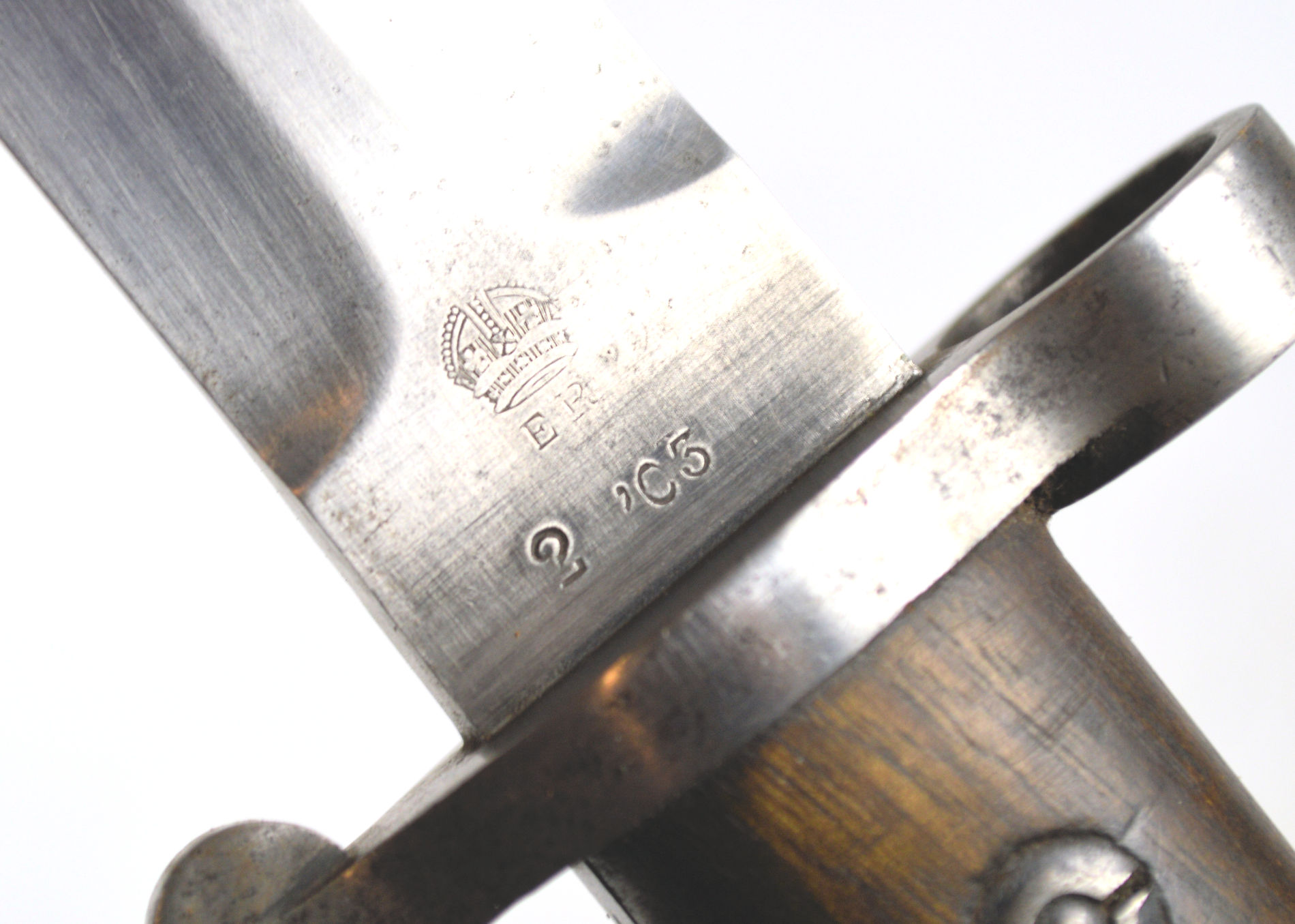 and supplied the required bayonets from obsolete or rejected parts. In this instance, the bayonet was originally produced in the Ordnance system, but probably failed to make the required bend test