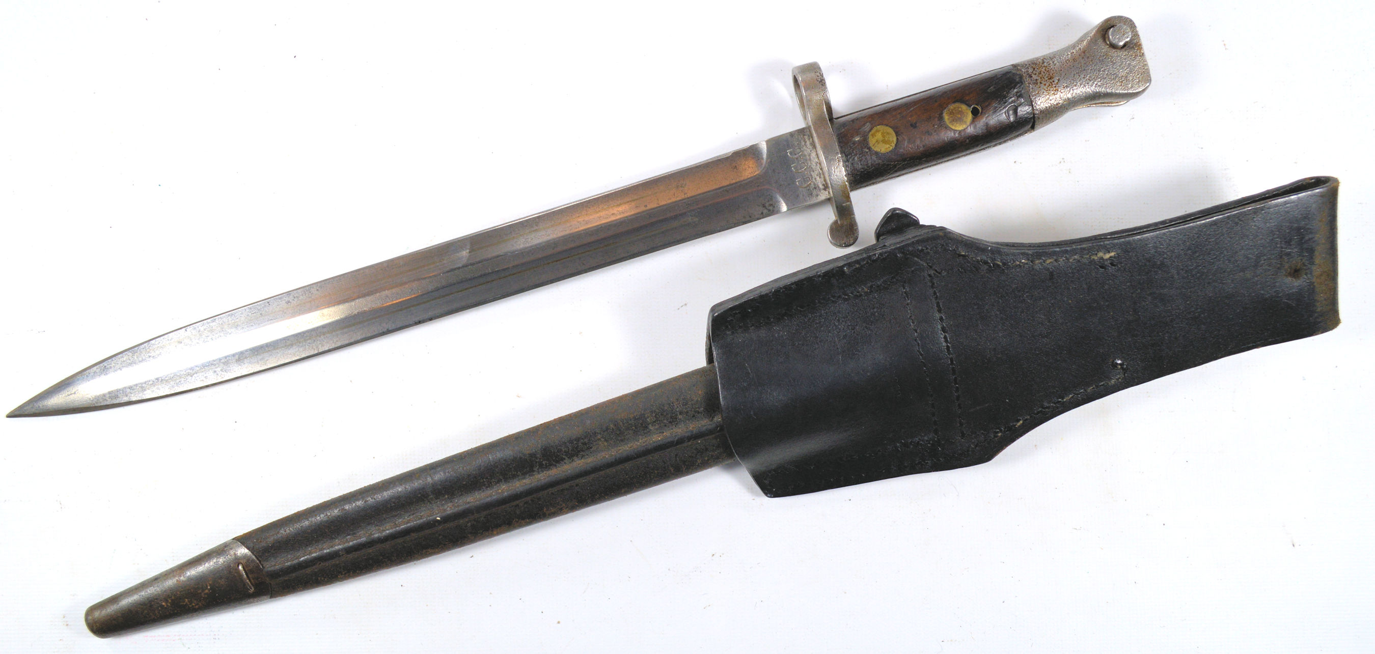 the bayonet was part of a consignment shipped to South Africa. Marked on the pommel 6.D.M.R., it was issued to the 15 Die Middellandse Regiment. Upon South Africa's entry in World War II,